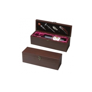 מארז יין מהגוני לבקבוק יין עם ערכת פותחנים